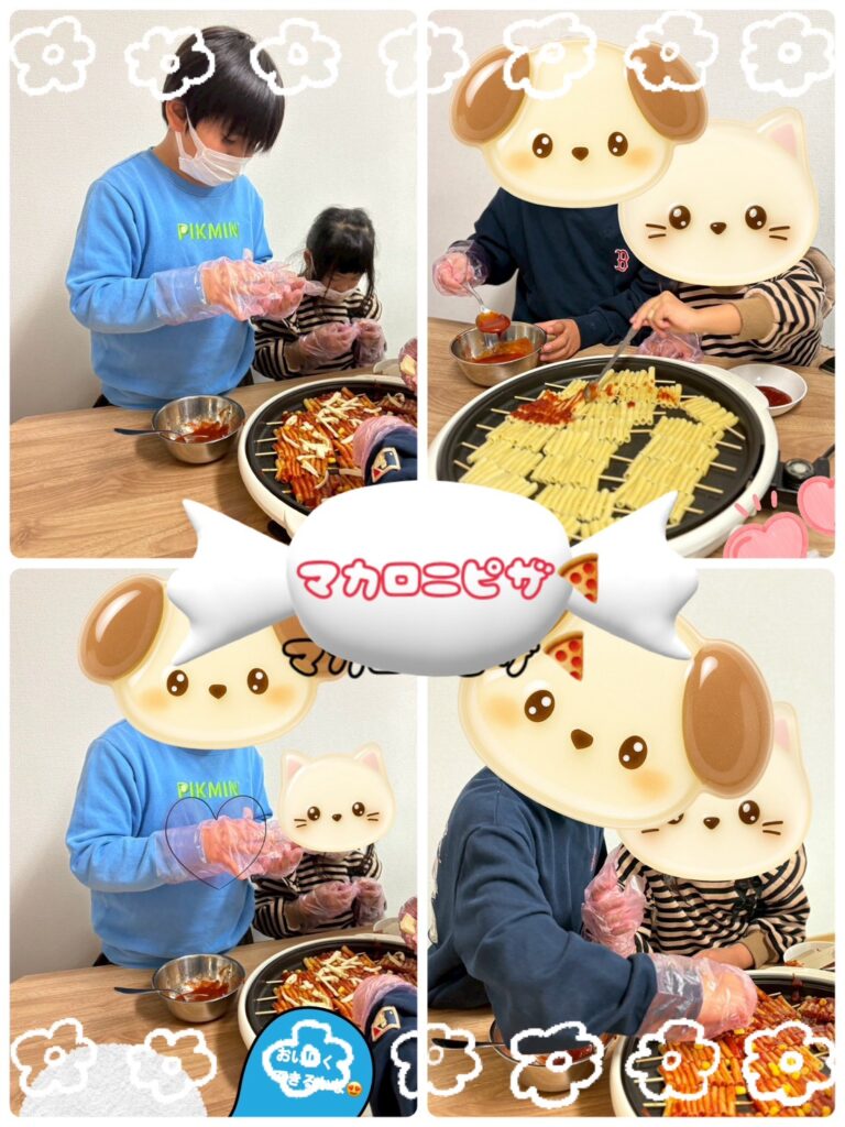 クリスマス会当日は、子ども達が、マカロニでピザを作ってくれました。